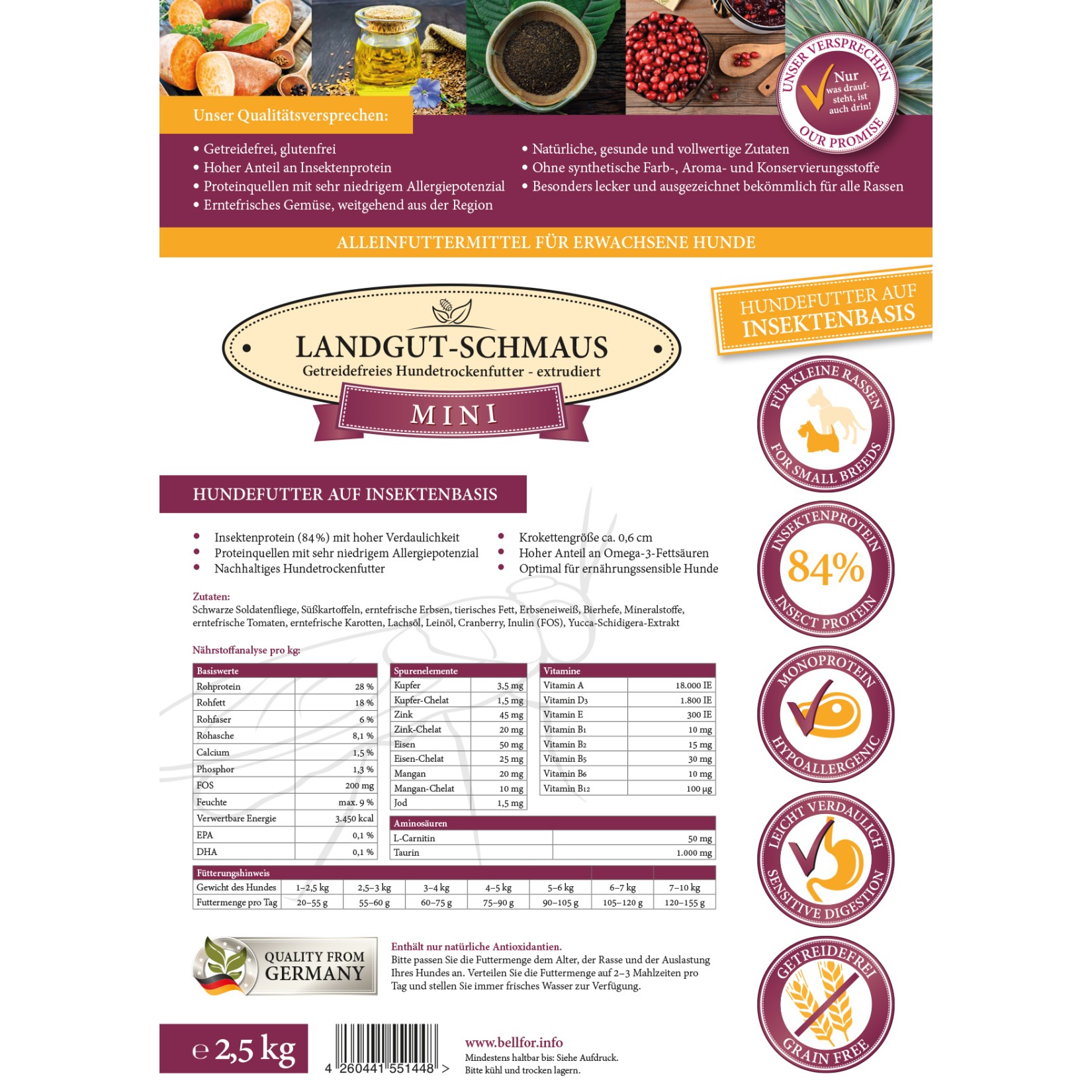Als Eiweißquelle nutzen wir bei unserem Landgut-Schmaus hypoallergenes Insektenprotein aus den Larven von Hermetia illucens (Schwarze Soldatenfliege). Zudem enthält das Futter kein Getreide oder andere minderwertige Rohstoffe, wie zum Beispiel pflanzliche oder tierische Nebenerzeugnisse. Die sorgfältig abgestimmte Zusammensetzung sowie die kleinen Kroketten machen das Futter zur idealen Wahl für Ihren Havaneser.