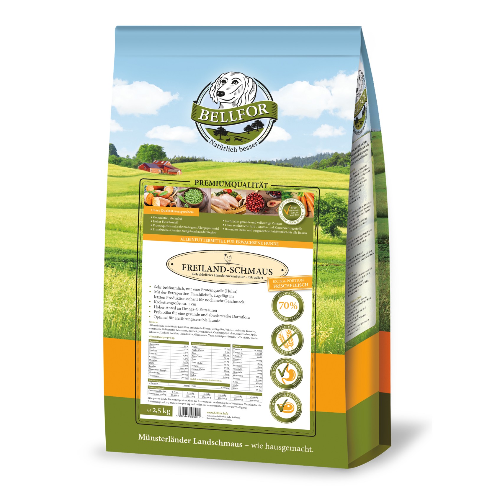 Bestellen Sie sich das Futterset mit Bellfor Freiland-Schmaus, Freiland-Menü und Freiland-Happen sowie unserer natürlichen Ergänzungsfuttermittel Bellfor Haut & Fell zum Sonderpreis in unserem Onlineshop. Als Dankeschön erhalten Sie mit Ihrer Bestellung einen Rabattgutschein, mit dem Sie sich bei Ihrem nächsten Futterkauf einen Preisnachlass in Höhe von 10 Prozent sichern können.