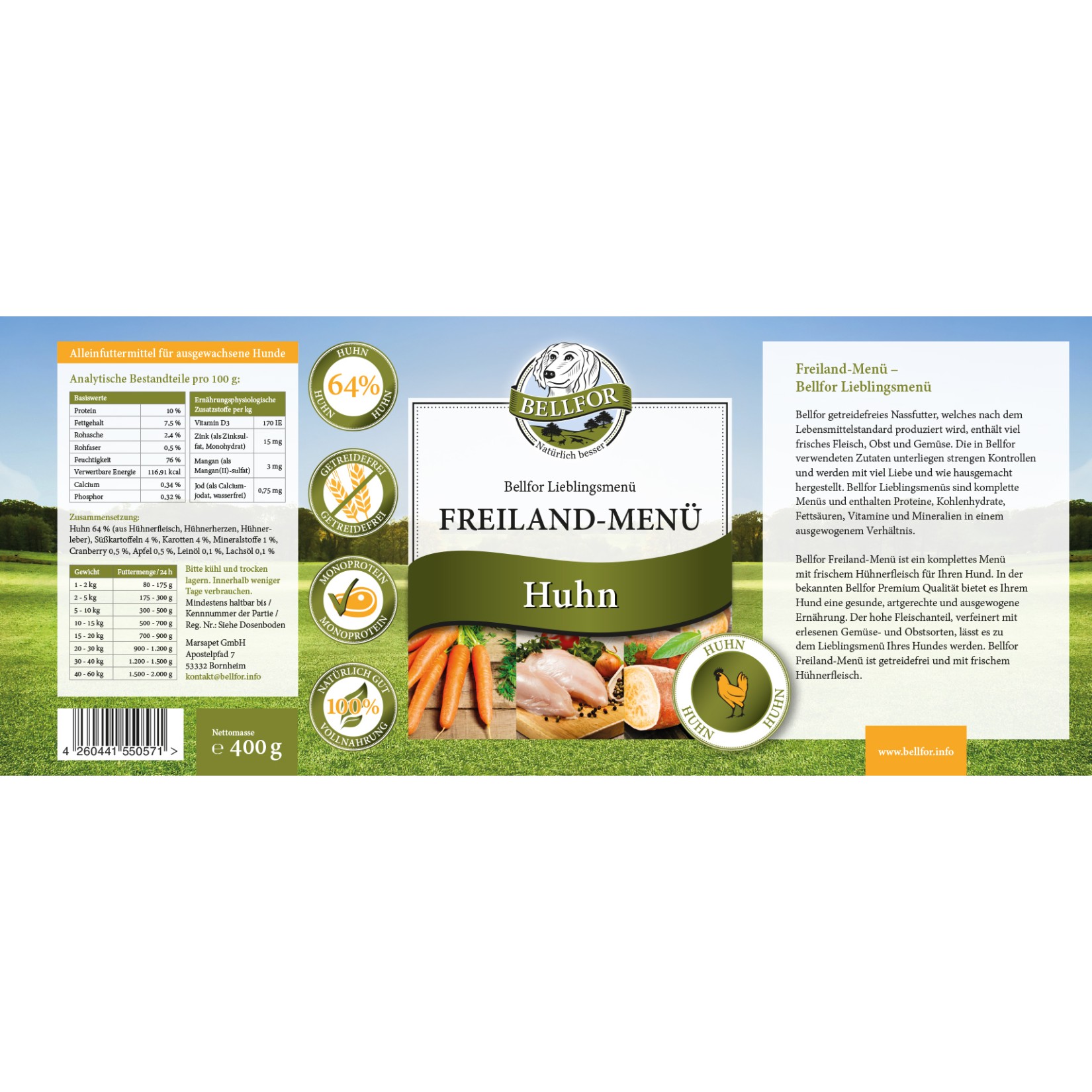 Bellfor Freiland-Menü – Getreidefreies Nassfutter für Hunde mit Huhn 400 g