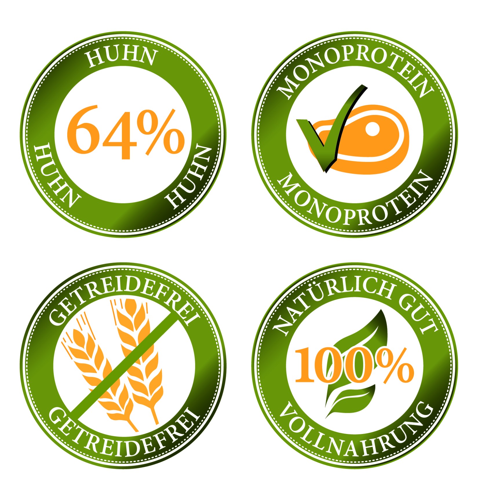 Hunde sind Semi-Karnivoren, die auf eine bedarfsgerechte Versorgung mit tierischen Proteinen angewiesen sind. Aus diesem Grund enthält unser getreidefreies Nassfutter für Hunde 64 % Hühnerfleisch. Das verwendete Fleisch hat Lebensmittelqualität. Es stammt nicht aus der Massentierhaltung, sondern aus artgerechter Tierhaltung von langjährigen Partnern aus unserer Region.