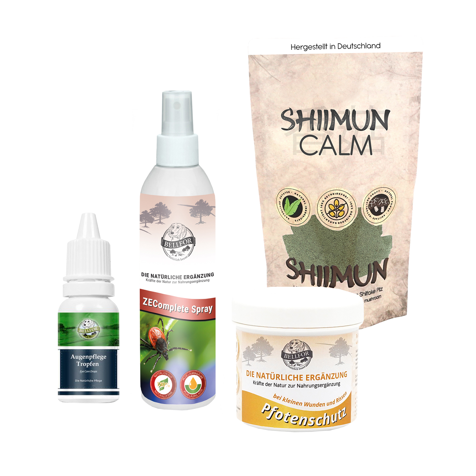 Überlassen Sie das Wohlbefinden Ihres Hundes im Urlaub nicht dem Zufall und vertrauen Sie auf hochwertige Pflegeprodukte und Ergänzungsfuttermittel von Bellfor. Bestellen Sie unser Set für den Urlaub mit Hund zum Sparpreis und freuen Sie sich auf eine entspannte Urlaubsreise mit Ihrem vierbeinigen Begleiter.