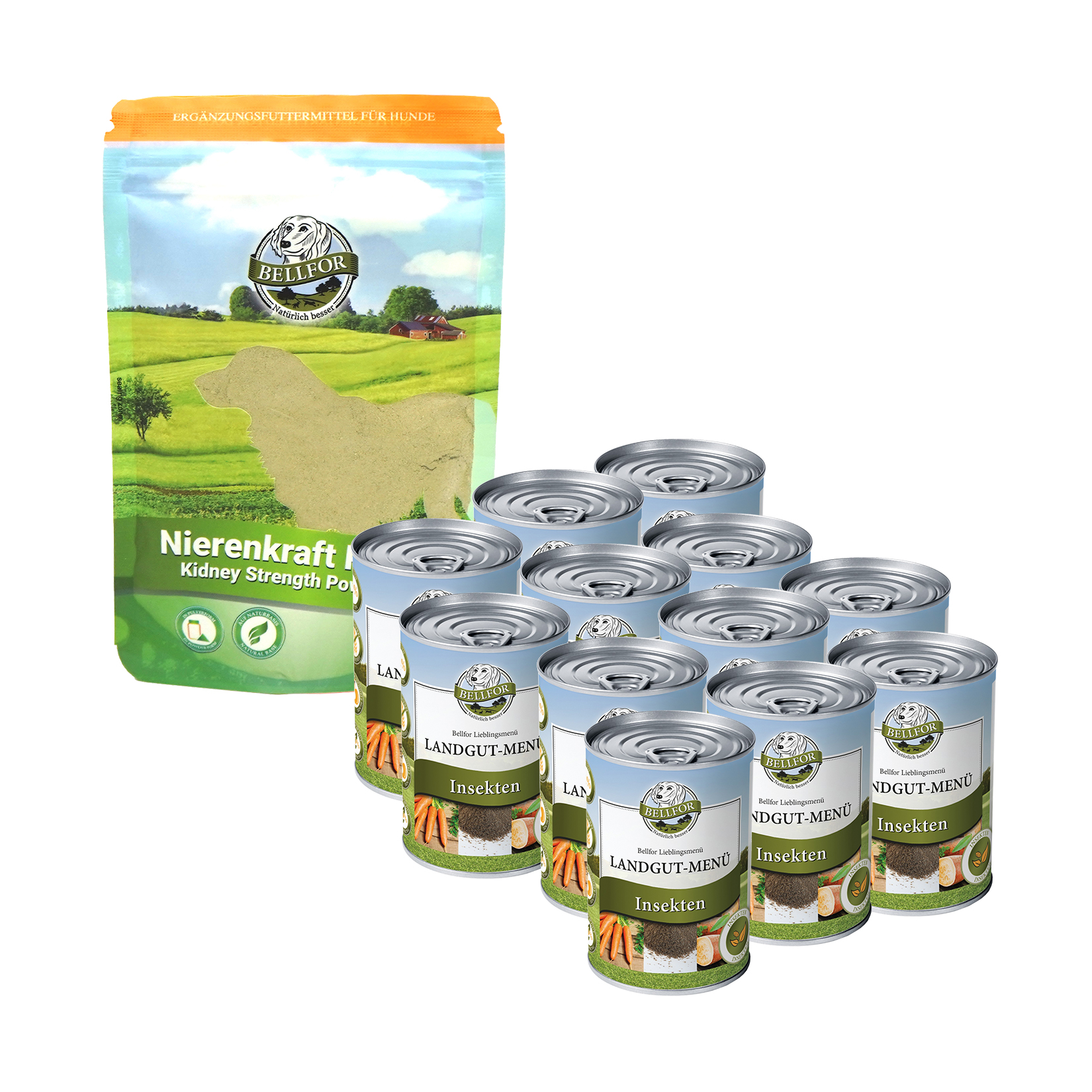 Wir empfehlen für Hunde mit Nierenproblemen und Struvitsteinen eine Fütterung mit Bellfor Landgut-Menü. Das schmackhafte Nassfutter enthält Insekten als Eiweißlieferant. Insektenprotein liefert Ihrem Hund alle essentiellen Aminosäuren.